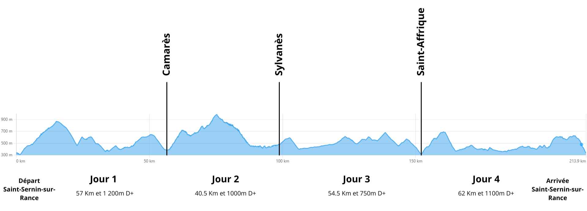 Le départ à Saint-Sernin-sur-Rance est accessible uniquement en voiture, cependant il est possible de faire le départ à Saint-Affrique pour venir en bus.